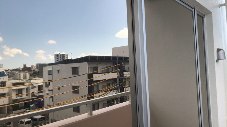 外の風景ではありません。反射して建物が映っているのです。室内が全く見えないので目隠し効果もありますね。