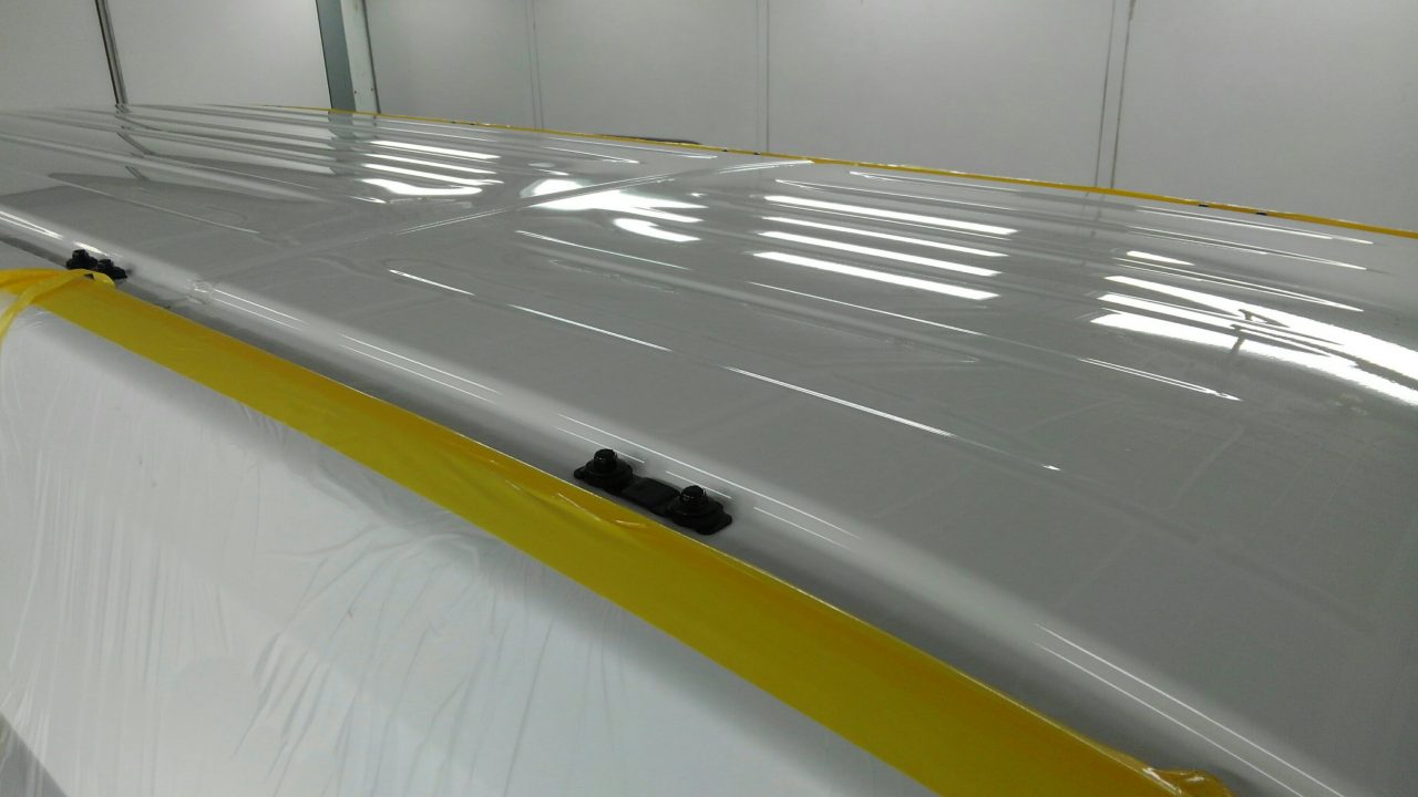 網入りガラスの為や西日が長時間あたる個所の為 外貼り施工となります。