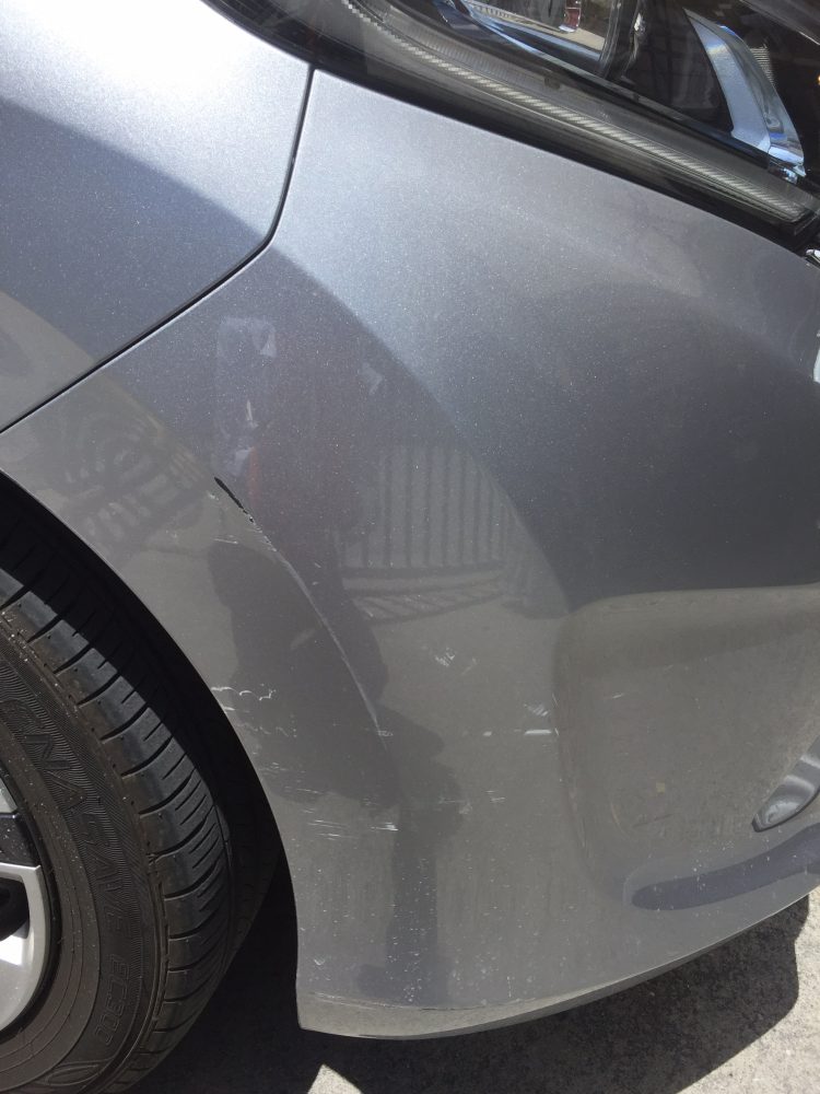 本日入庫しました手のひら二つ分のバンパーキズ補修