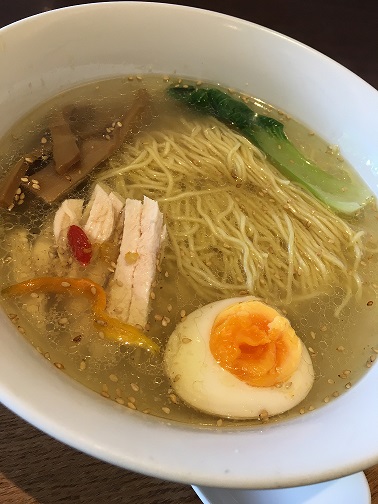 細切りのゆで鶏肉とコラーゲンたっぷり入ったさっぱり塩味のラーメン✨