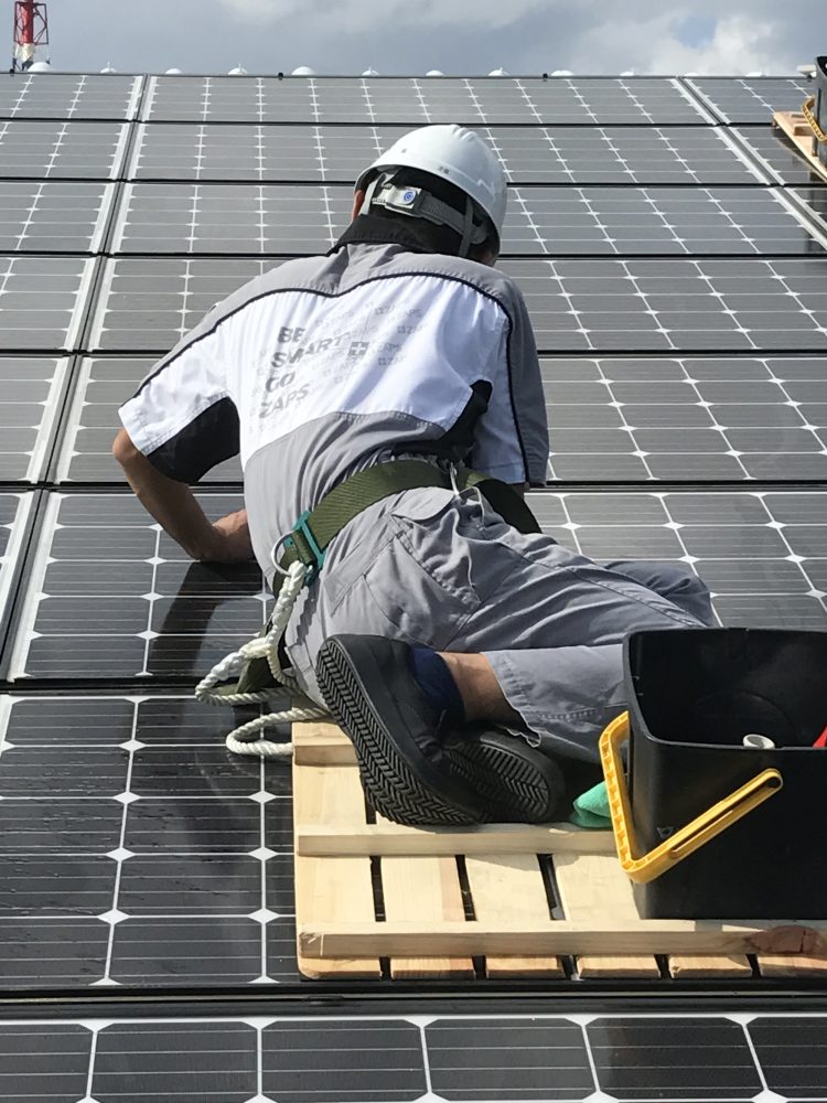 ソーラーパネルに建築塗料が付着し除去作業にチャレンジしてます