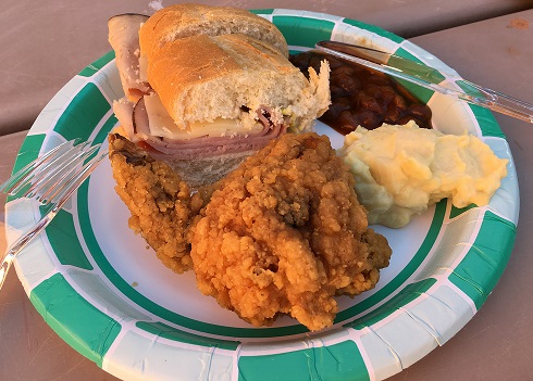 ↑飛行機での機内食 ↑バーレーオブファイヤーでピクニックした時