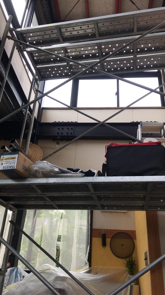 2階吹き抜けとなり 高さ5m程あるので足場を設置!