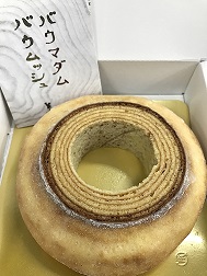 歯ごたえがあり中にピーナッツやアーモンドのペーストが挟まれていて香ばしい焼き菓子とバターがたっぷり米粉のしっとりバームクーヘン♪