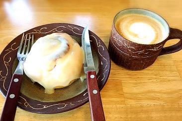 そこで私は友人オススメのシナモンロールとコーヒーを♪