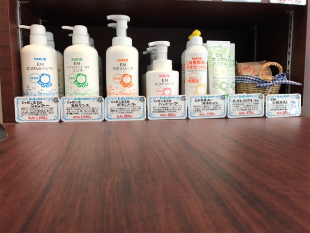 EMとシャボン玉石けんさんがコラボしたシャンプーやリンスなども販売しています(^_-)-☆