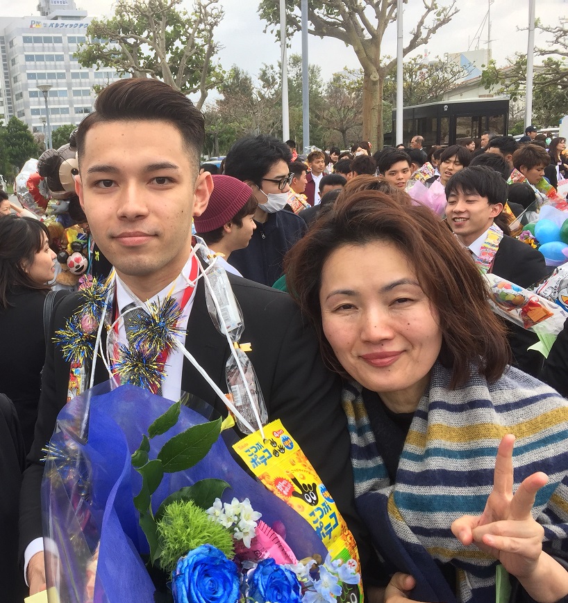 男子生徒はリクルートスーツでしたが、女子生徒は、彩り豊かな袴や色鮮やかな琉装に