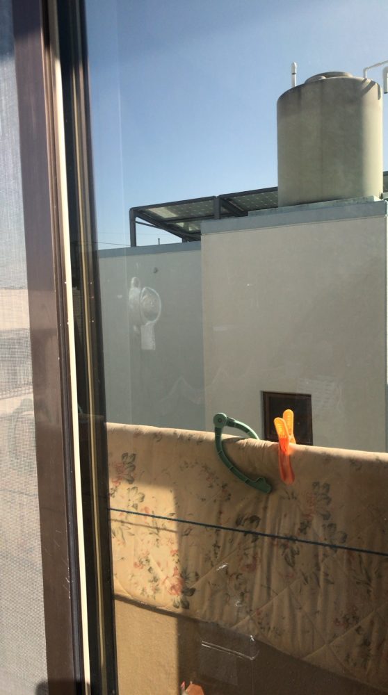右側窓ガラス スターリング40を施工し 左側窓を開けた状態です。