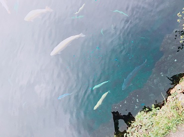 あいにく曇り空でしたが富士山の伏流水に水源を発する湧水池で深いところで7~8mほどになるらしく青い池になってすごくきれいで鯉が沢山気持ちよさそうに泳いでいました(*´▽`*)