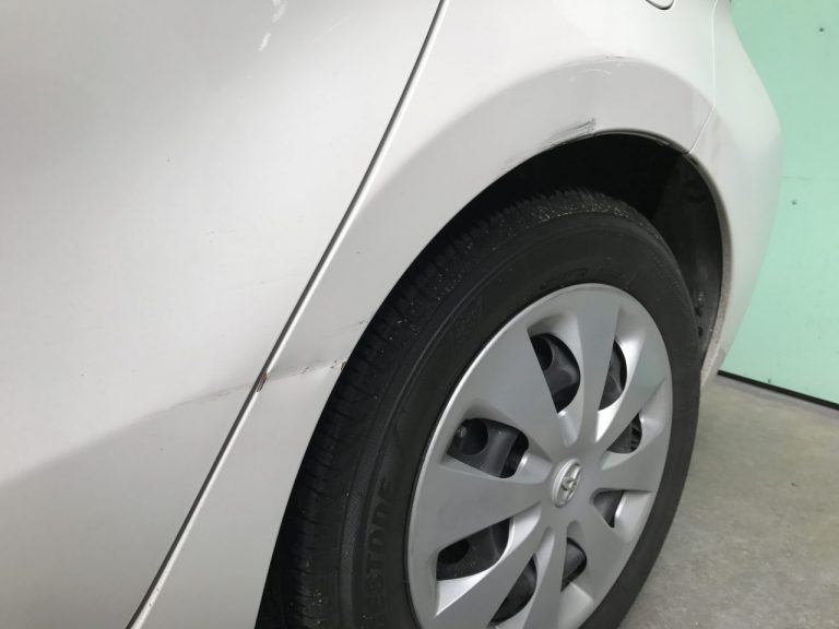 左側後ろのタイヤ付近はこういった巻き込みで結構傷つけてしまいやすい場所ですよね(´;ω;`)