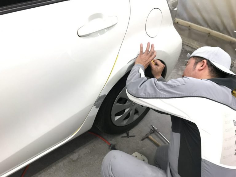 ※修理箇所が倍以上に大きくなっているのが解ると思います、これは作業工程がキズの補修より多い為塗装範囲も大きくなる傾向があります。
