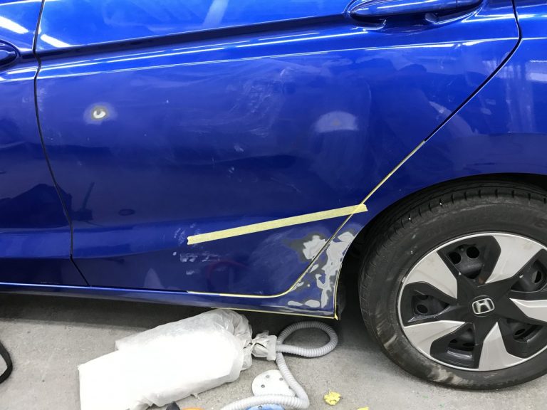 今回の入庫はフィットの右Rドア、Rフェンダーのヘコミ修理です
