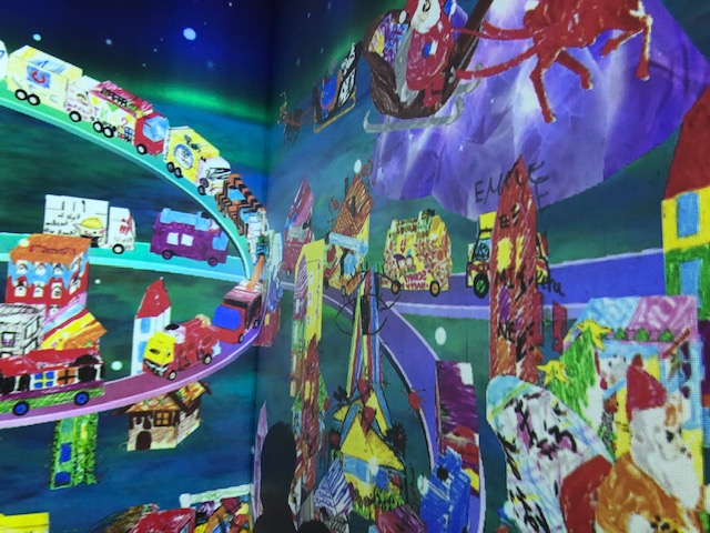 子供たちが色を塗った動物や乗り物がアートの中にまざって動くスペースもあり