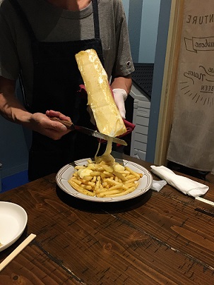 チーズを使ったお料理が多いようで、ポテトフライにアツアツのラクレットチーズをトッピングしてもらいましたが、これが超絶品♡