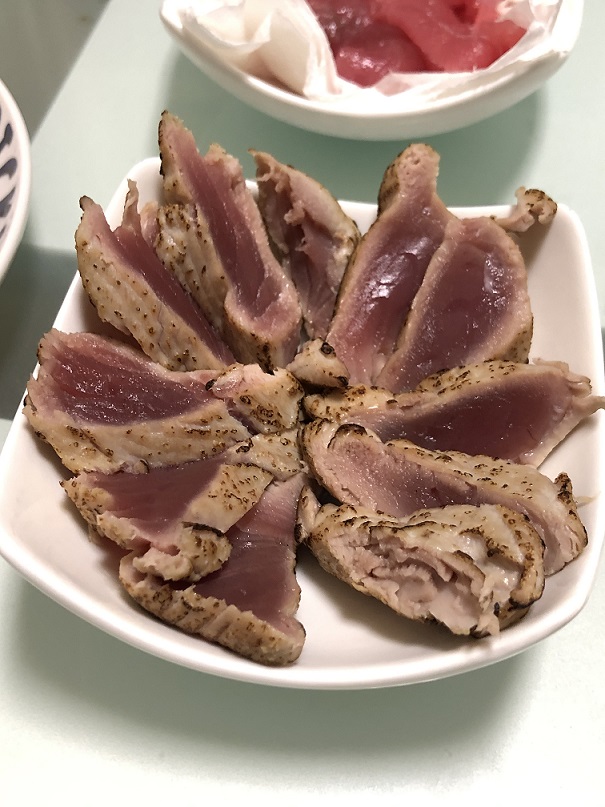 ついでに一匹だけ釣れたカツオでたたきも!