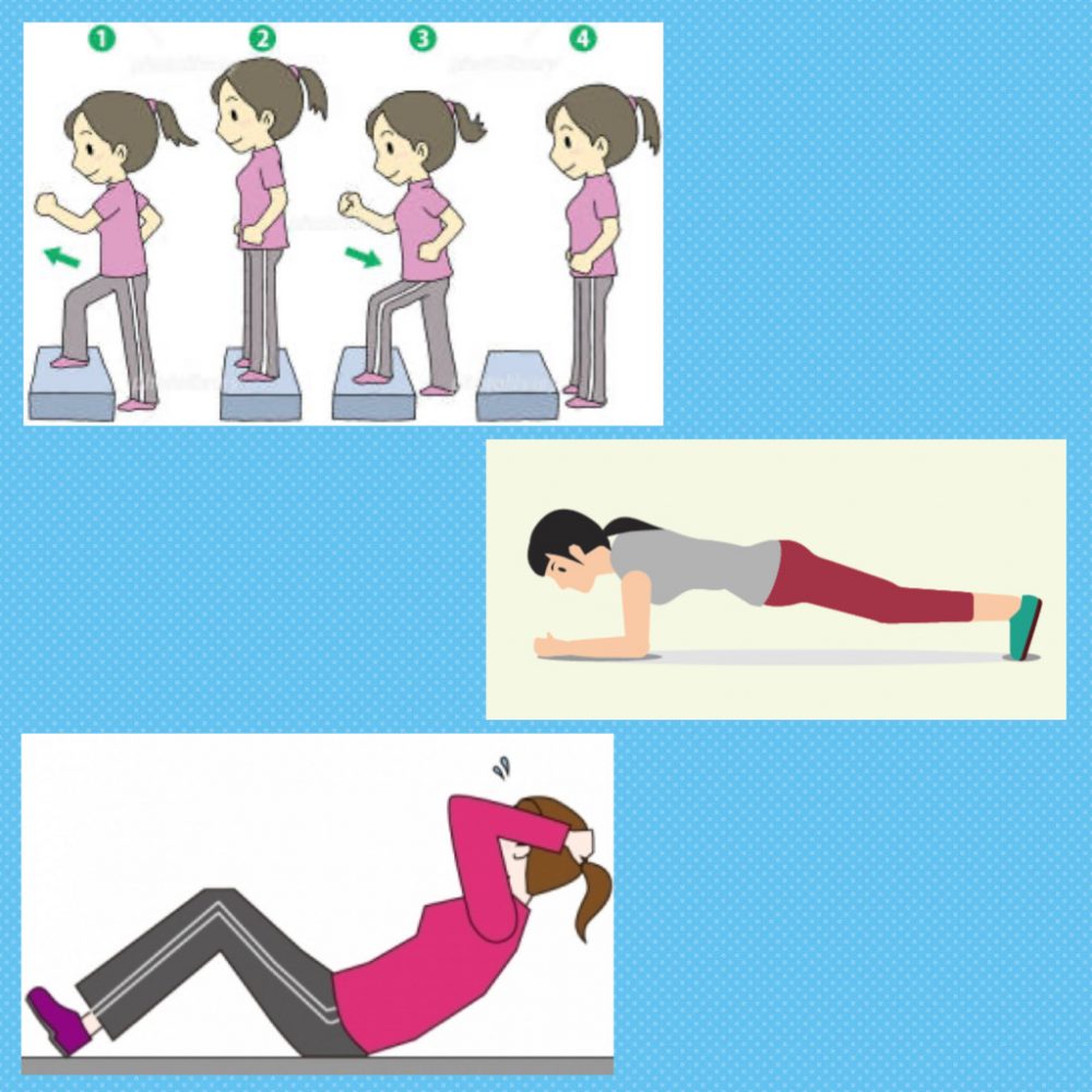 その言葉で、踏み台昇降やプランク、腹筋とやってみました(^^)