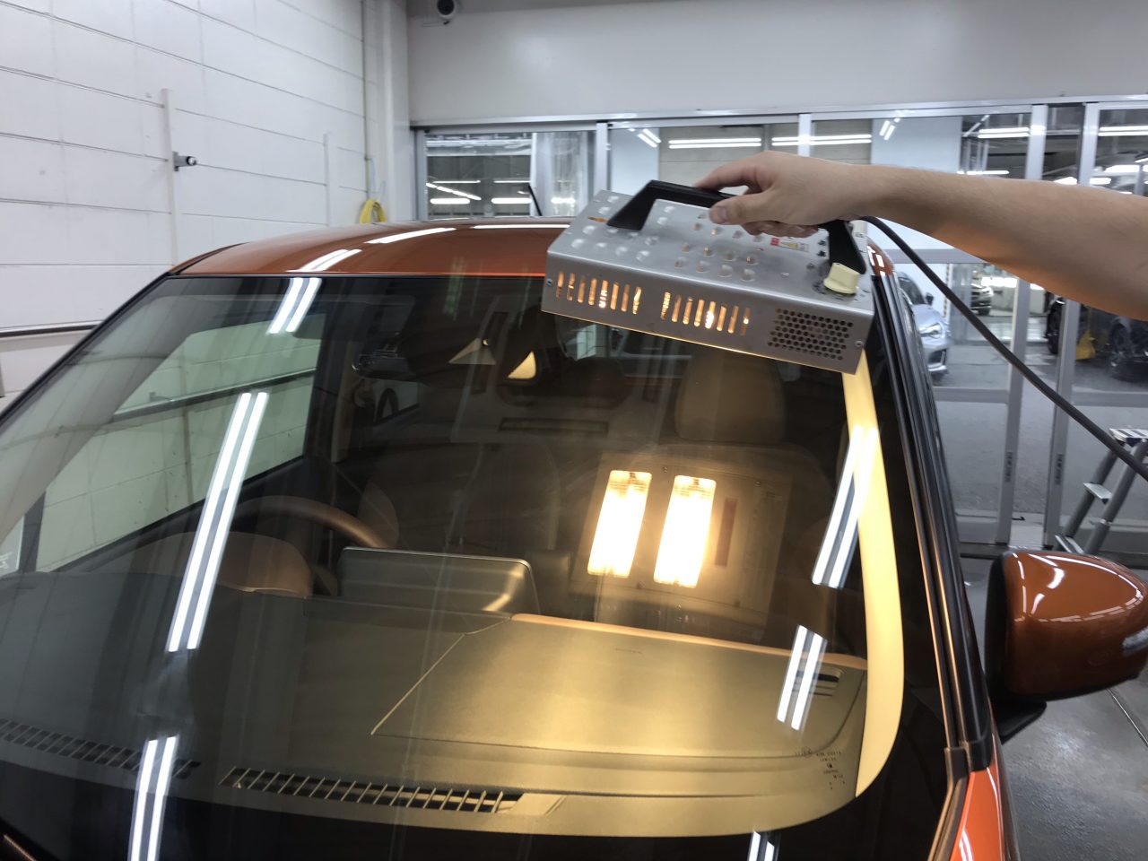 コーティング剤を施工後、強制乾燥を行う為に、ヒーターでの焼き付け作業を行います。