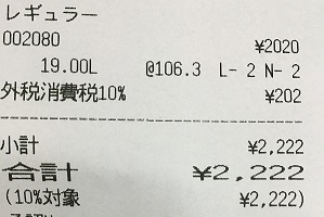 先程代車のガソリンを入れに行き、渡された明細を見ると・・・・・