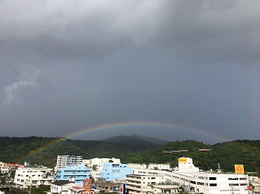 エレベーターホールへ行くと近くから虹が架かっていて一気にテンションがあがりました♡しかもうっすーら2重になってます♪