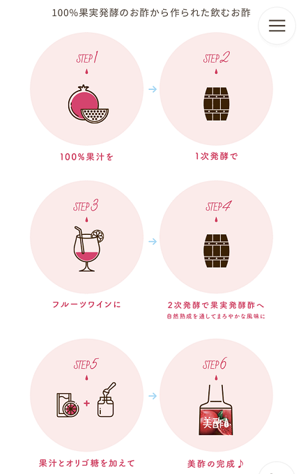 100果汁をそのまま発酵させて作ったお酢で、酢独特のむせるような感じが少なく、果物の風味もしっかりあります。