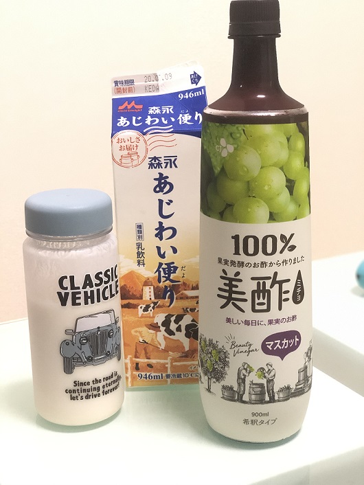 牛乳で割ると、飲むヨーグルトの味になっちゃうんですよ~!(^^)! ミチョグルトと呼ぶそうです(笑)