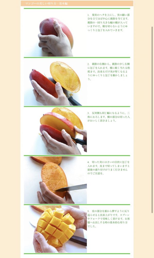 ”マンゴ切り方”でググったら、沢山情報でてきました。