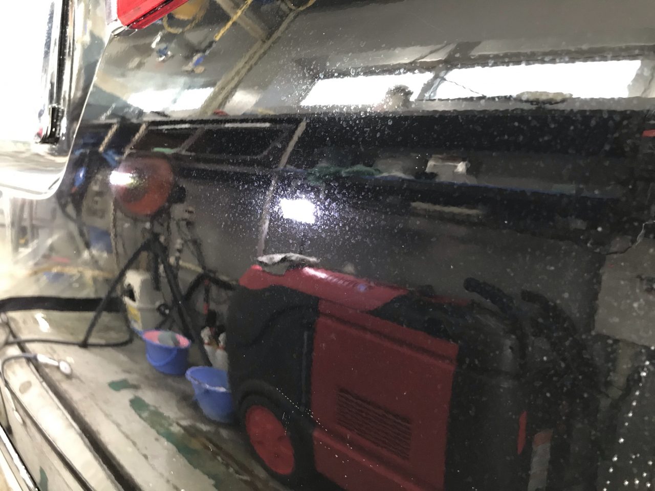 お客様の駐車している場所が後ろのほうだけ雨にあたるらしくその部分だけ水シミが付着してしまったとの事でした。