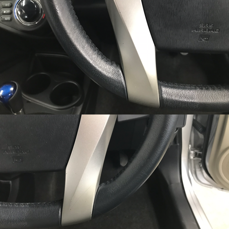 ハンドルは運転中常に握る部分なのでどうしても汚れてしまいます。汚れをおとさずに放置すると革を痛めてしまう可能性があるので定期的にクリーニングすることをおすすめ致します。