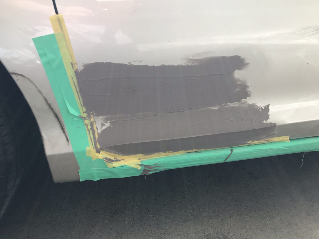 研ぎ慣らし次に液体のパテでさらに慣らしていきます。