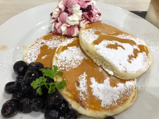 パンケーキとブルーベリーと生クリームの相性の良さに幸せを感じながら