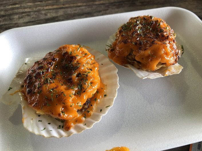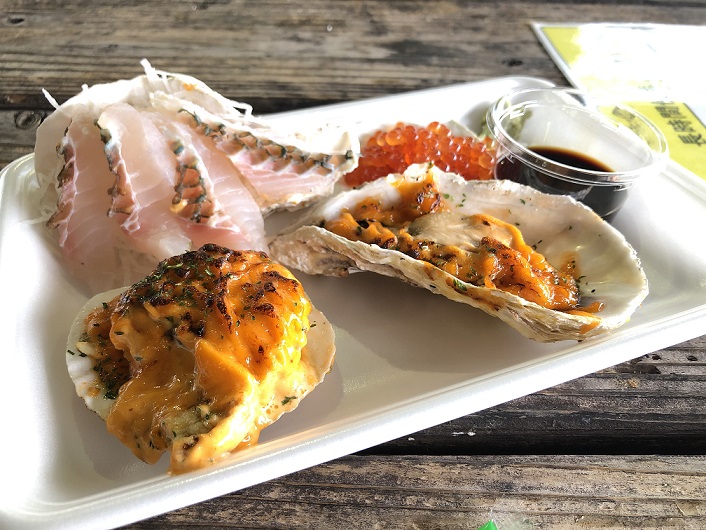 ホタテのウニソース焼きや、カキのウニソースも各250円で食べれます!