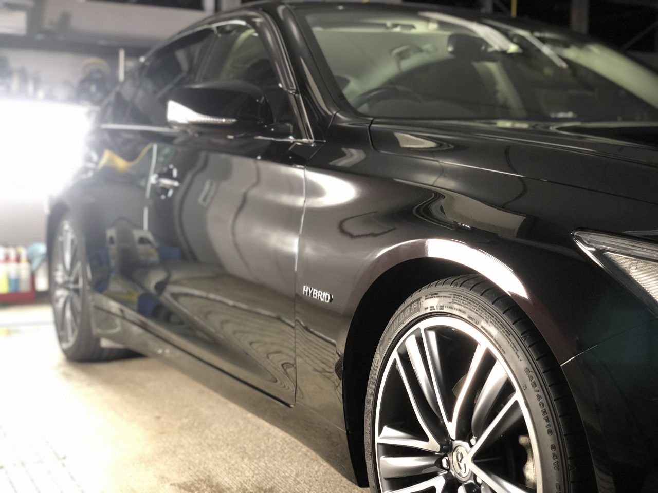 初回なので下地処理を念入りに行いしっかり研磨します。その後コーティング剤を塗り込み仕上げますと