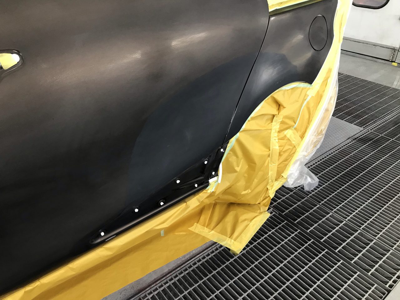 差がハッキリ出ています。そのままボディー全体を研磨&コーティングを塗り込み仕上げたところ黒本来の光沢が蘇りました。