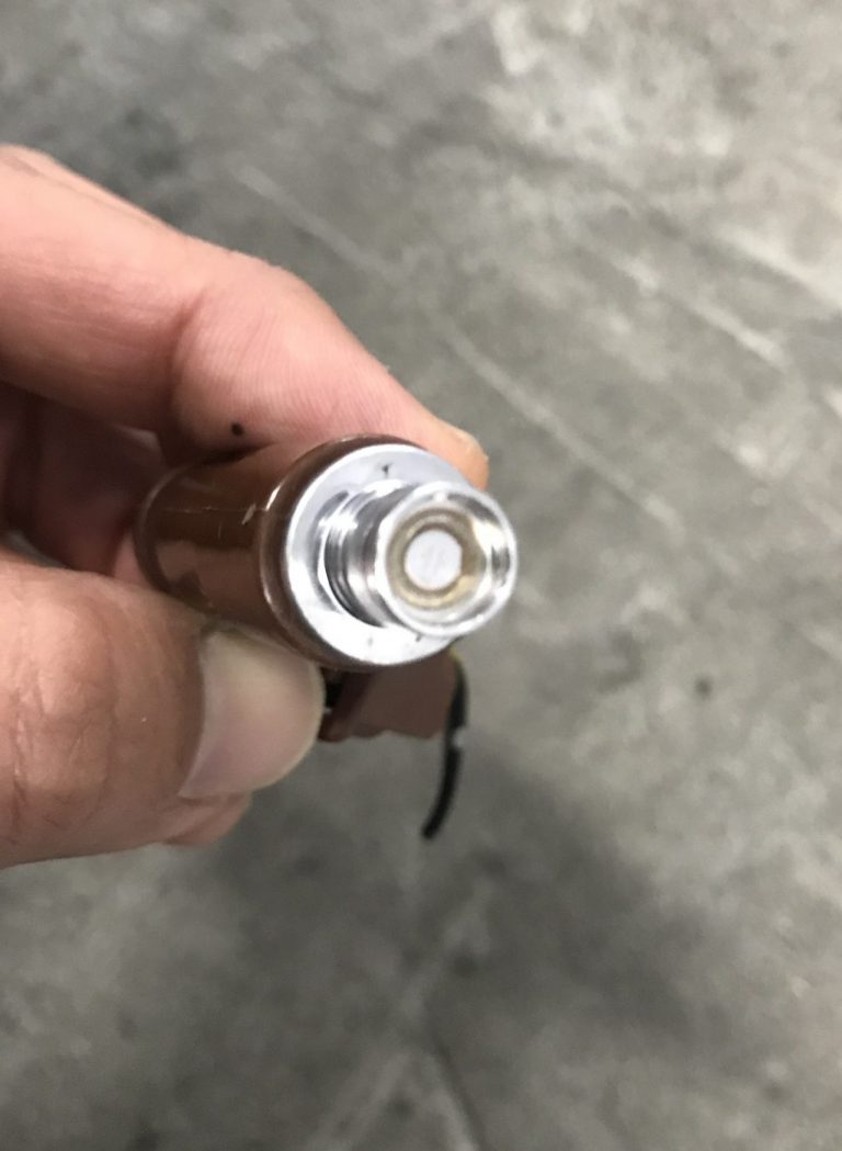 インジェクターの中は弁があり電気を通さないと弁が開かないためバッテリーでプラスとマイナスをつなぎカチカチとなれば弁が開いている証拠