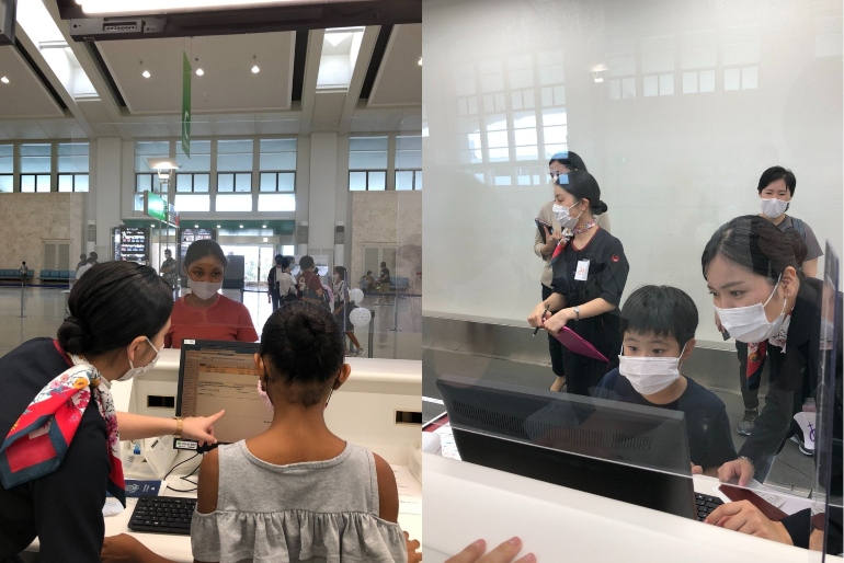 小学生対象に、那覇空港でグランドスタッフのお仕事体験ができ、