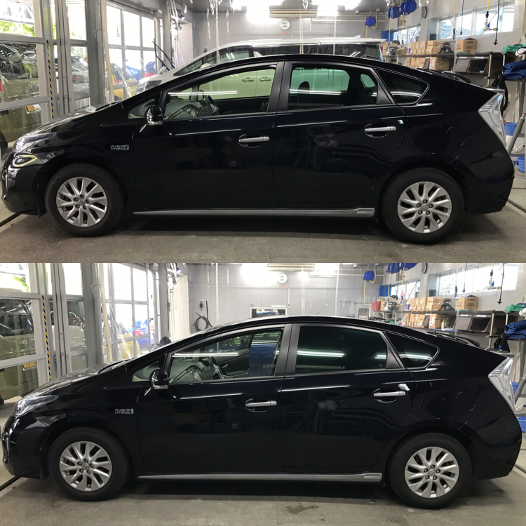 本日施工した車両はトヨタプリウスです。