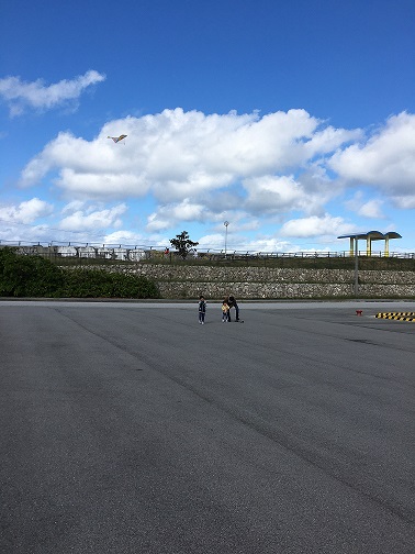 近所の広場で凧揚げをして青空を気持ち良さそうに泳いでいました。