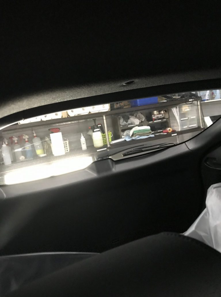 リアガラス施工前👆マイナーチェンジ前はプリウスの様な二分割のガラスでしたが、