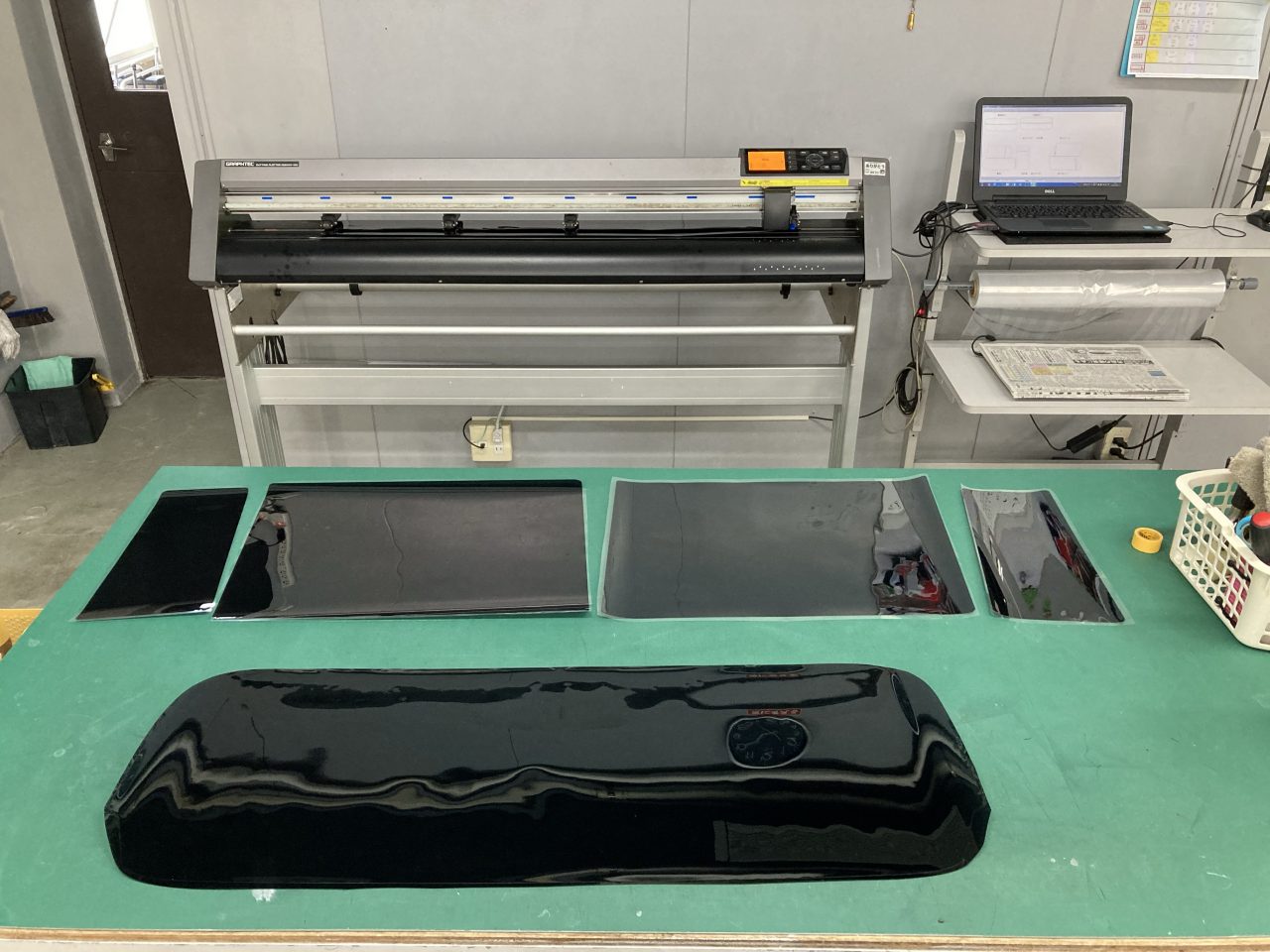 そんな台数が多い時に助かるのがデータカットされたフィルムです。とても古い車両や新しい車両、マイナーな車両ではない限りほとんどのデータがありパソコンとカットマシンを使用しフィルムをカットすることができます。