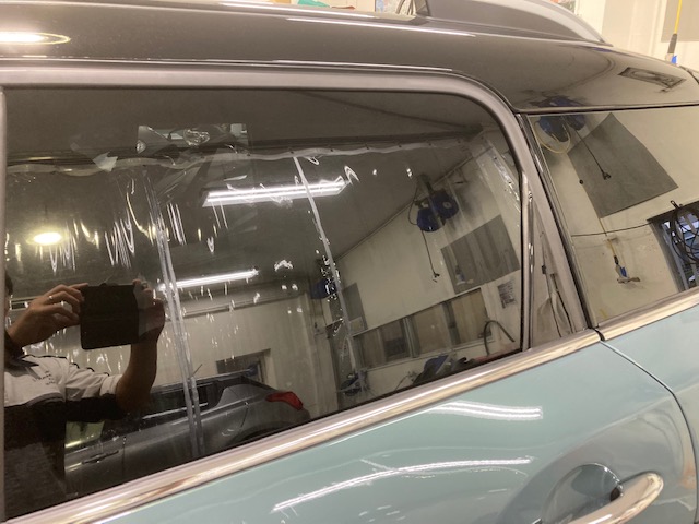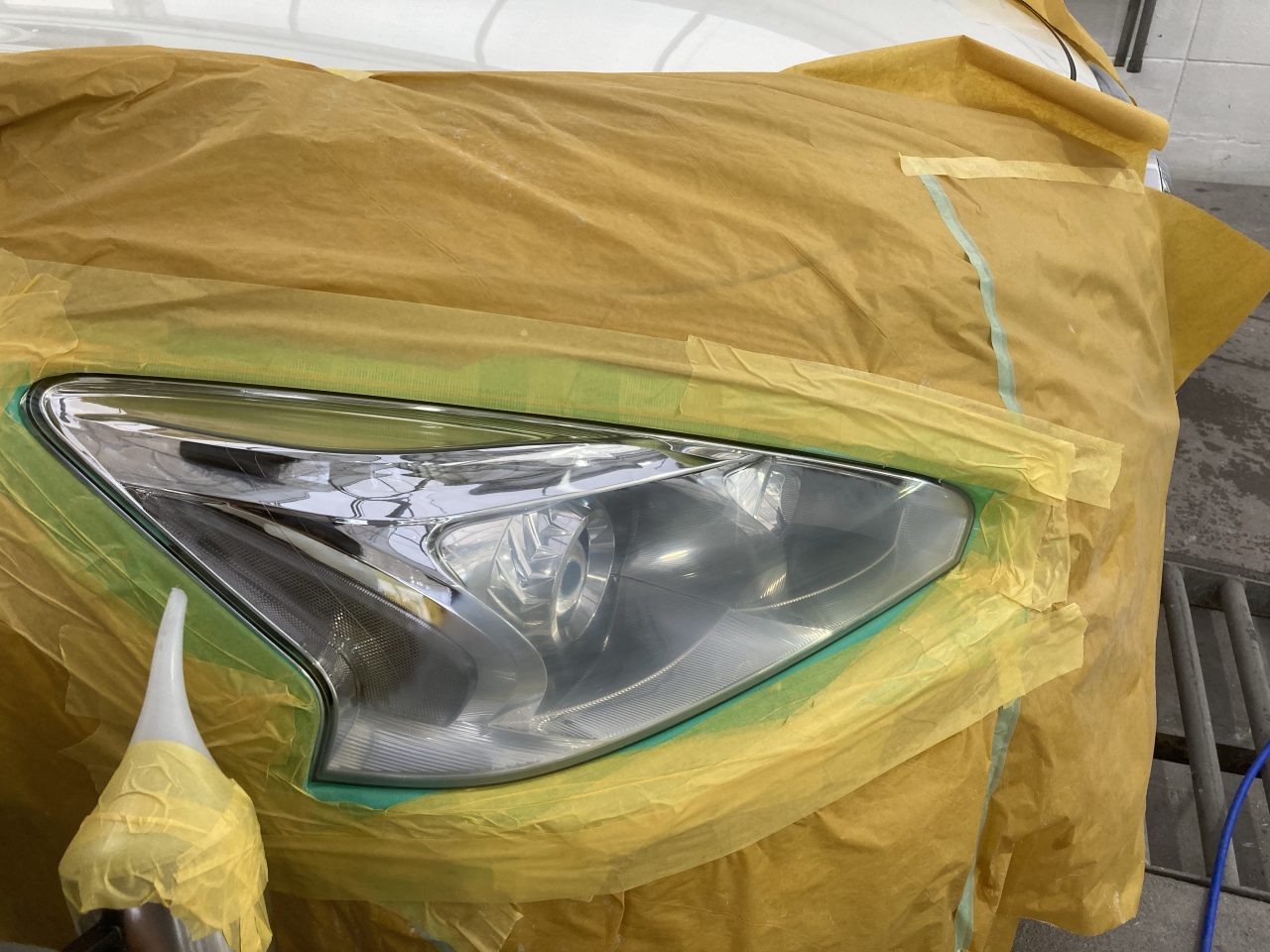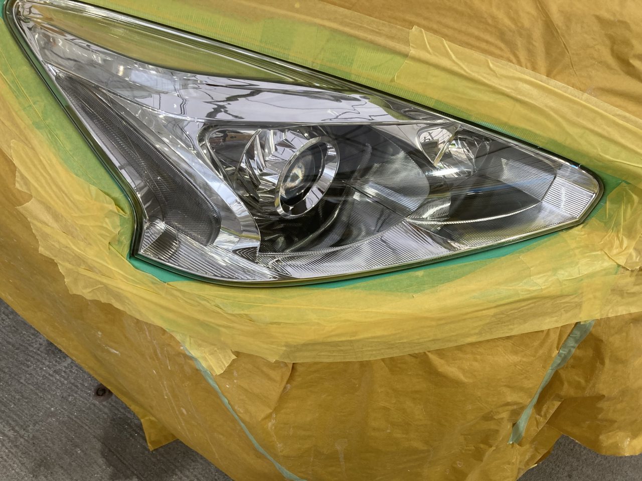 マスキングをして劣化塗膜の剥離、蒸着の準備をしていきます。