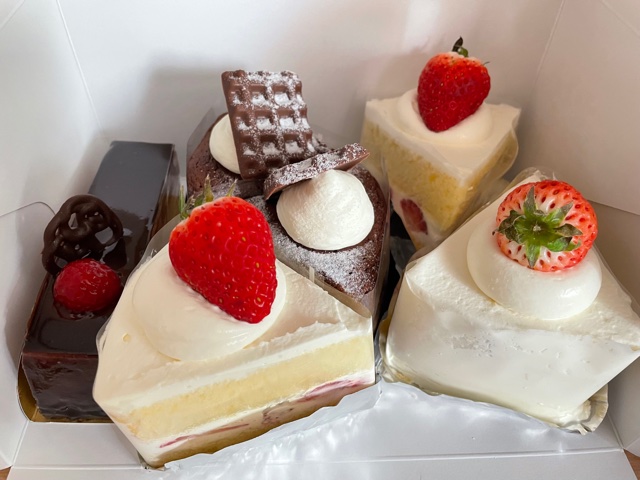 甘さ控えめのいちごのショートケーキとフランボワーズのチョコケーキをいただきましたが