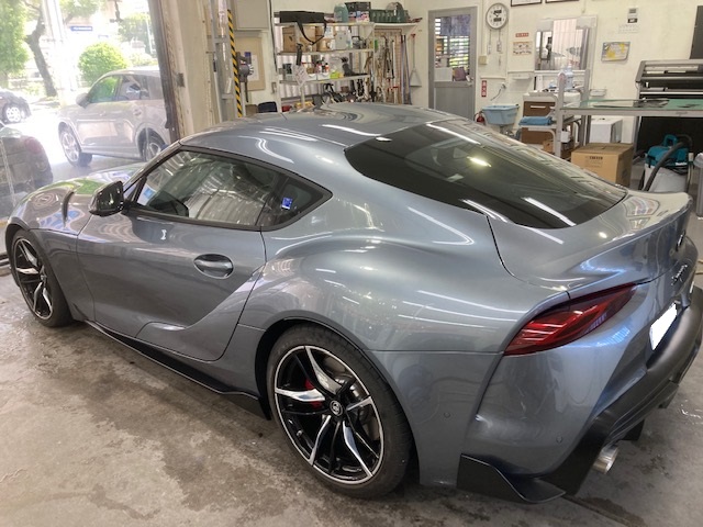 スポーツカー全般に言える事なんですが、車体が低いので後続車のヘッドライトが気になると思います。今回は眩しさ軽減にもなると思い「プレミアムスモーク8」をご提案させて頂きました。