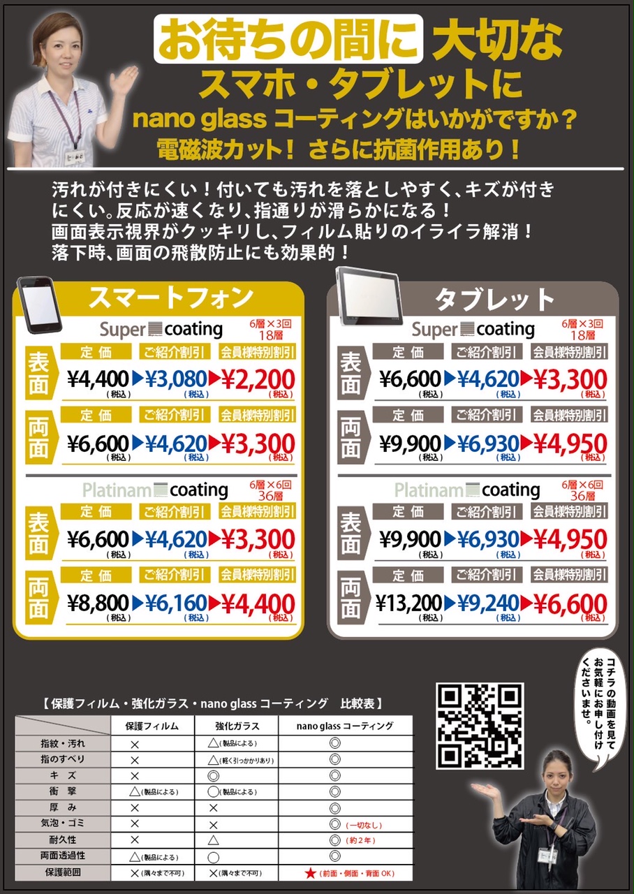 プレミアムルームでお待ちの際にスマホコーティングはいかがでしょうか?