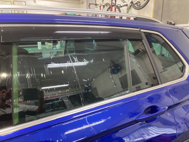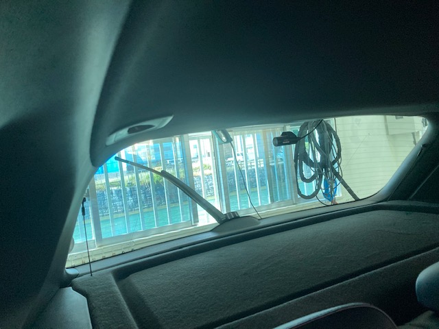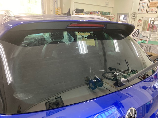 リアガラスも透明で断熱とプライバシー保護の為にプレミアムスモーク8を貼り付けしました。