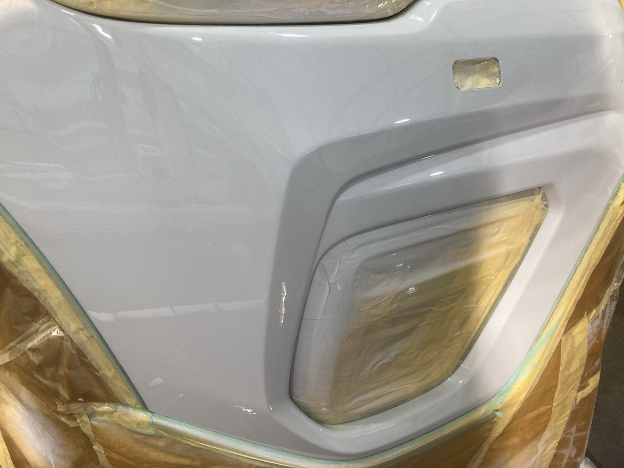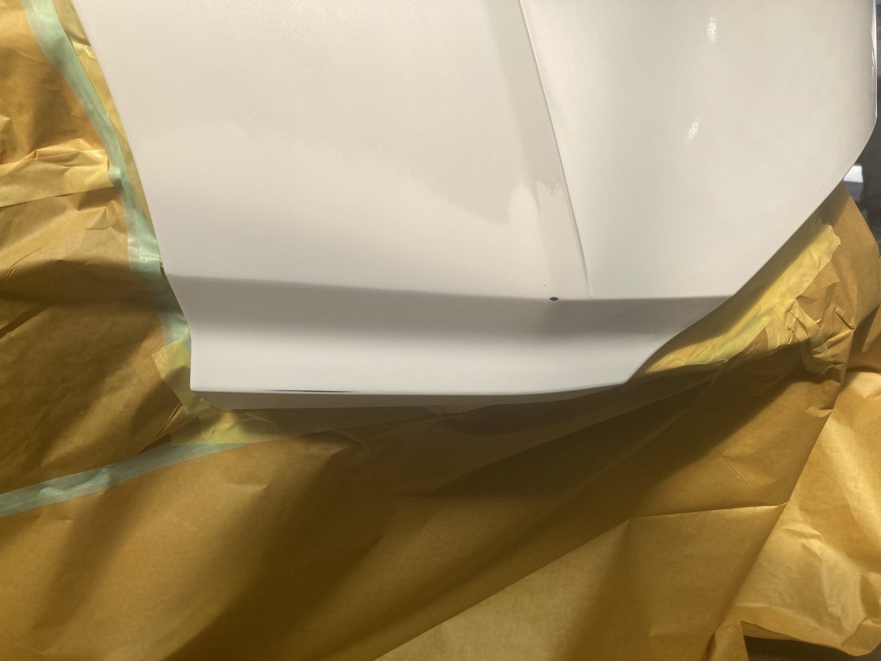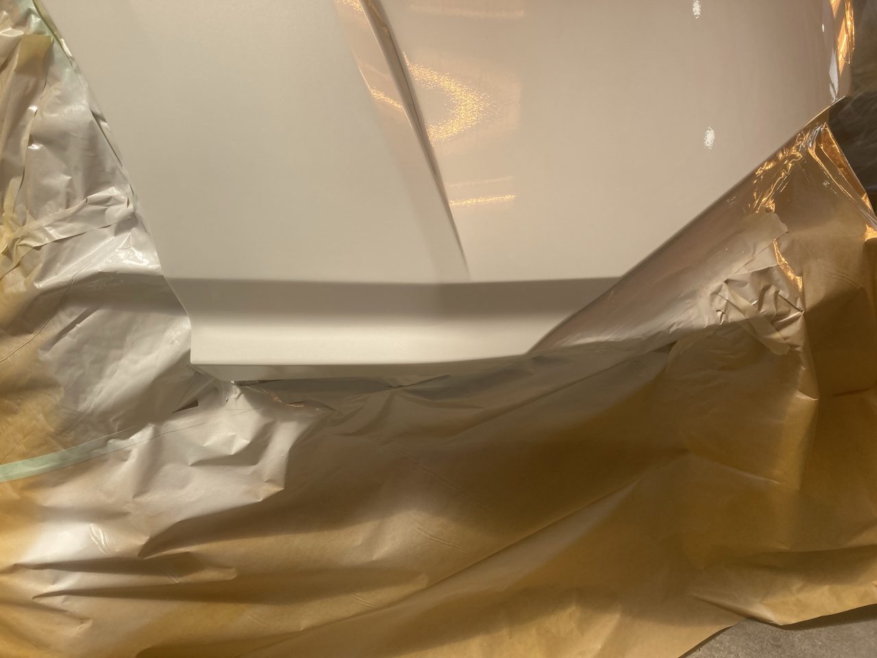 周りのパネルに傷が入らない様にマスキングして古いハードコートを削り取ります。