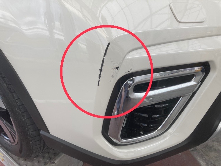 バンパー下の小さなキズですが、お客様は初めてキズを付けてしまったと、とてもショックを受けていました。