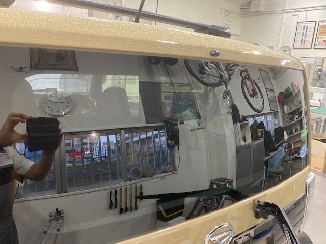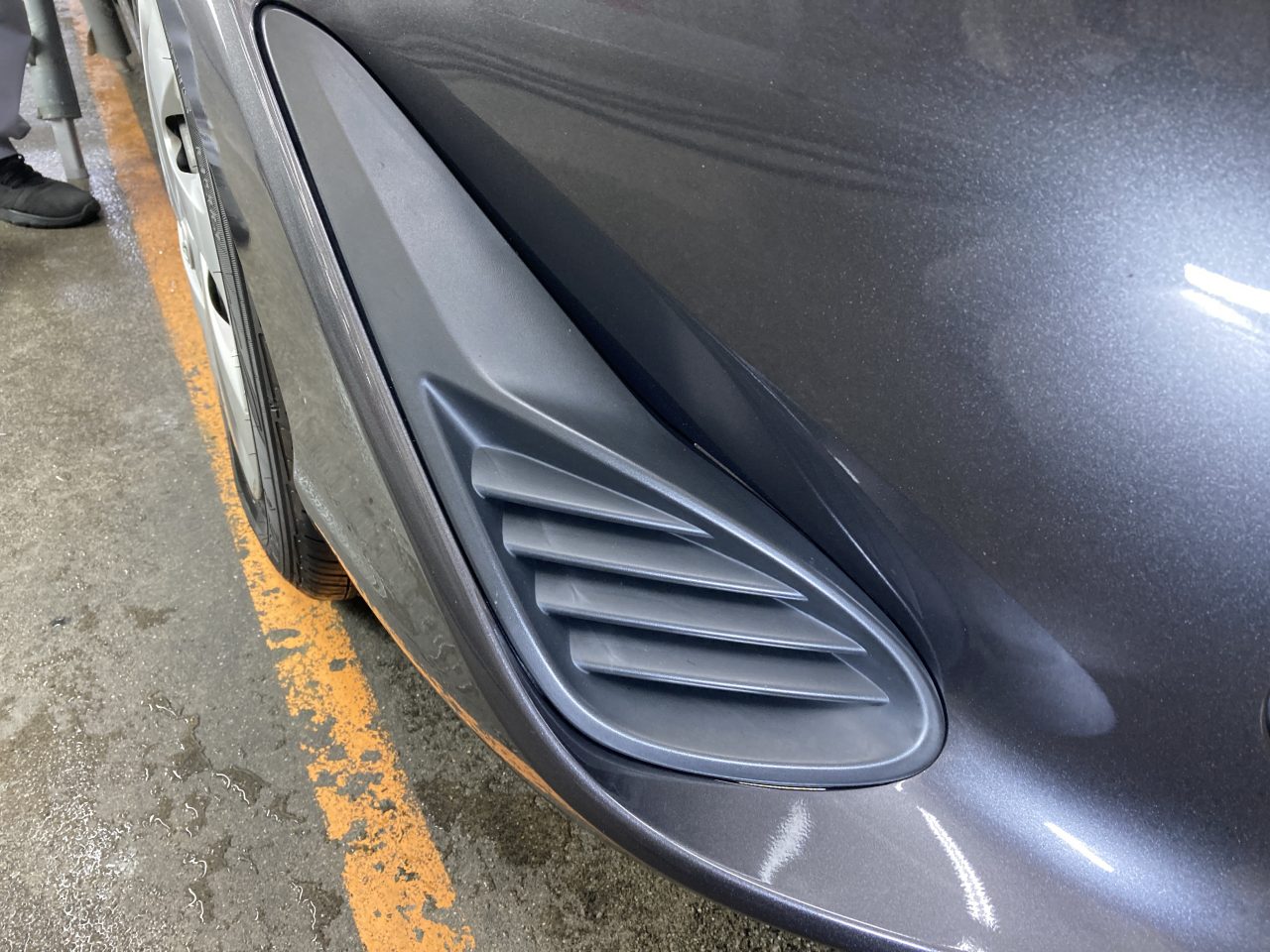 こちらは、新車から四年目の車輌でお客様から艶がなくてキレイにして欲しいとご相談がありました。施工前にキレイに洗浄を行いエアーガンで水分を除去していきます。