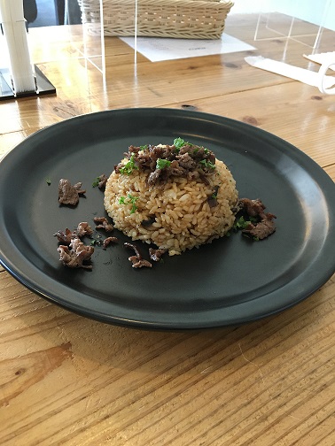 私たちはハンバーグとガーリックビールライスを注文してみました↓↓↓