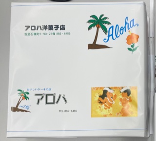 フロント中村さん一押しの、首里にあるケーキ屋さんアロハ洋菓子店のチョコレートケーキと、