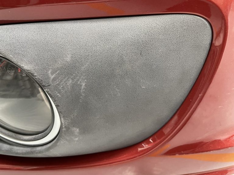 お車のボディーの所々に樹脂パーツが使われていますが、経年と共に劣化で白っぽくなってきてしまう部分です。